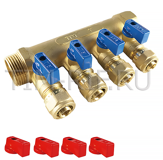 Коллектор с шаровыми кранами 1"х20 ц.-4 выхода TIM 200-1(4)-20 по низким ценам в интернет магазине TIM-RIF. Товары продаются кратно упаковке. Заказы принимаются мелким оптом и оптом. Действует гибкая система скидок. Доставка по Москве и Московской области осуществляется без выходных с 9-00 до 21-00.Особые условия для оптовых покупателей инженерной сантехники TIM